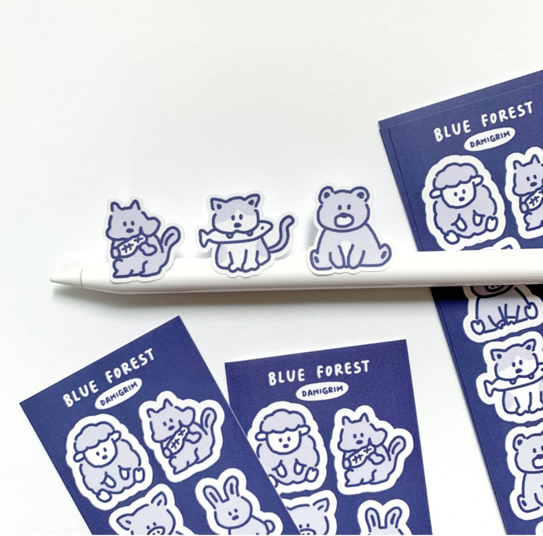 お座りしている可愛い動物たちの手描きステッカーです♡中には大好物を咥えている子も、、♡
