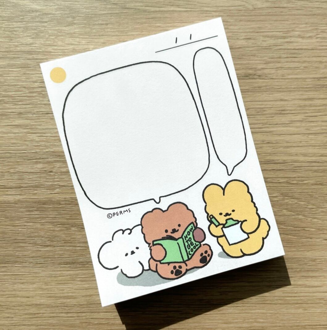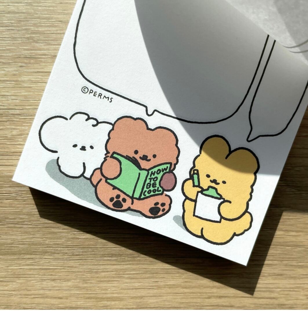 PERMSのかわいいキャラクターたちが何やら勉強しているようですよ...?ちょっとしたメッセージカードや仕事、お勉強のメモ、TODOリストにもお使いいただけます。