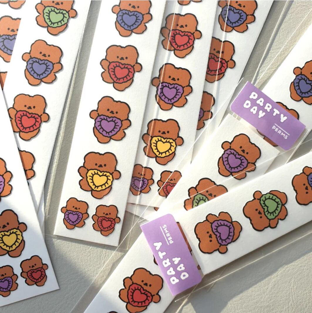 ふわふわのPERMSたちが描かれた可愛いステッカー。
