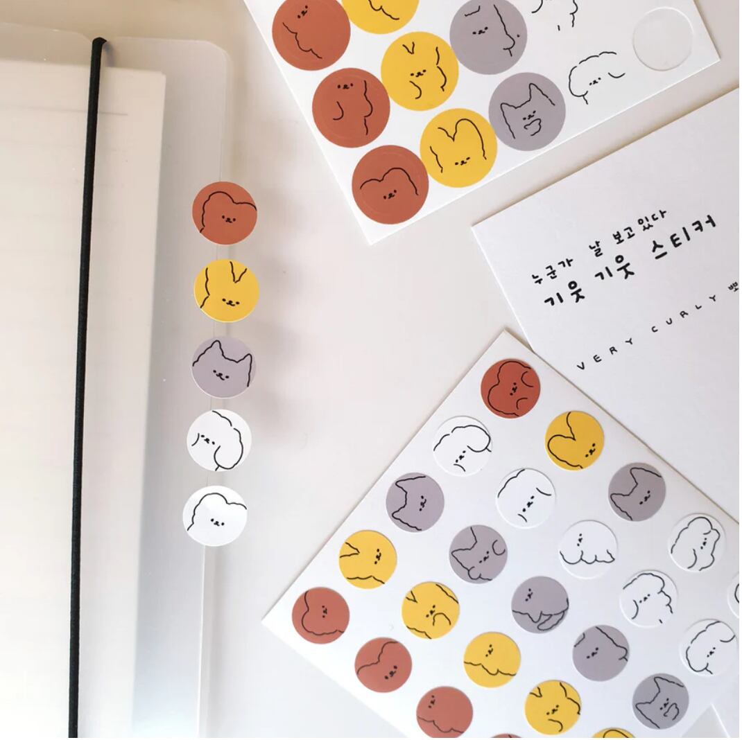 PERMSキャラクターたちの円形シールステッカーです。
