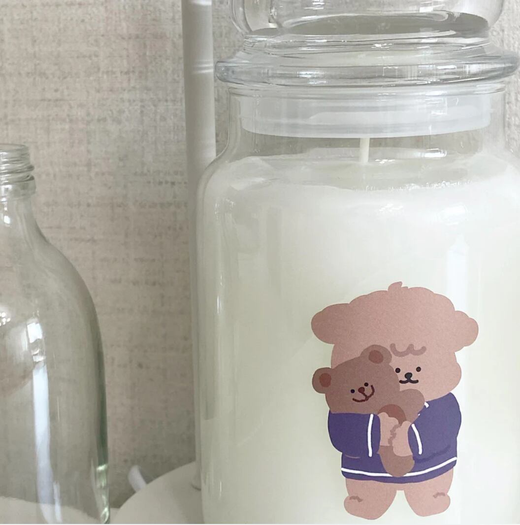 moominzyのキャラクター ムンテンとクマのぬいぐるみがデザインされたステッカーです。