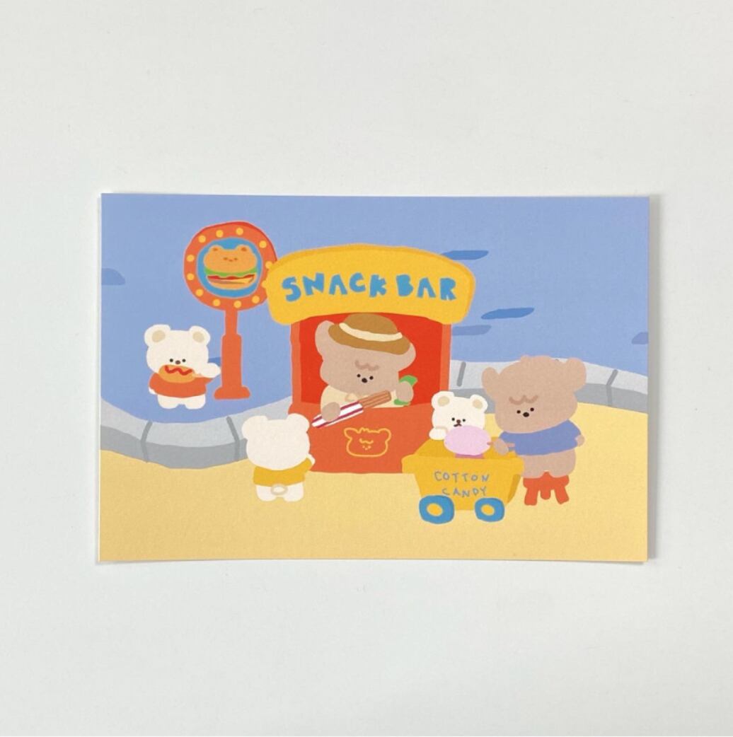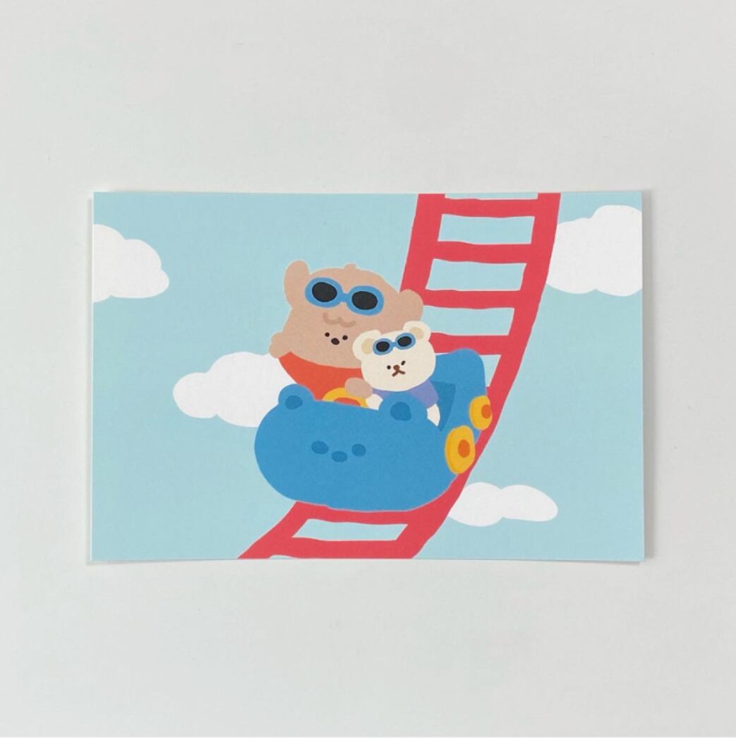 moominzyキャラクター、ムンテンが遊園地で楽しむ姿がとってもキュートなポストカードです。
