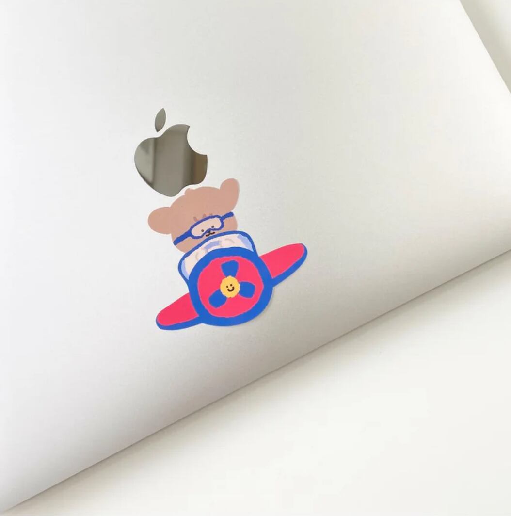 飛行機を操縦するムンテンが描かれた、キュートな1ピースのリムーバブルステッカー。